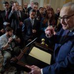 Senate Minority Leader Charles Schumer (D-NY) talks to reporters following the weekly Senate Democratic policy luncheon at the U.S. Capitol on January 28, 2026 in Washington, DC. | Getty Images…