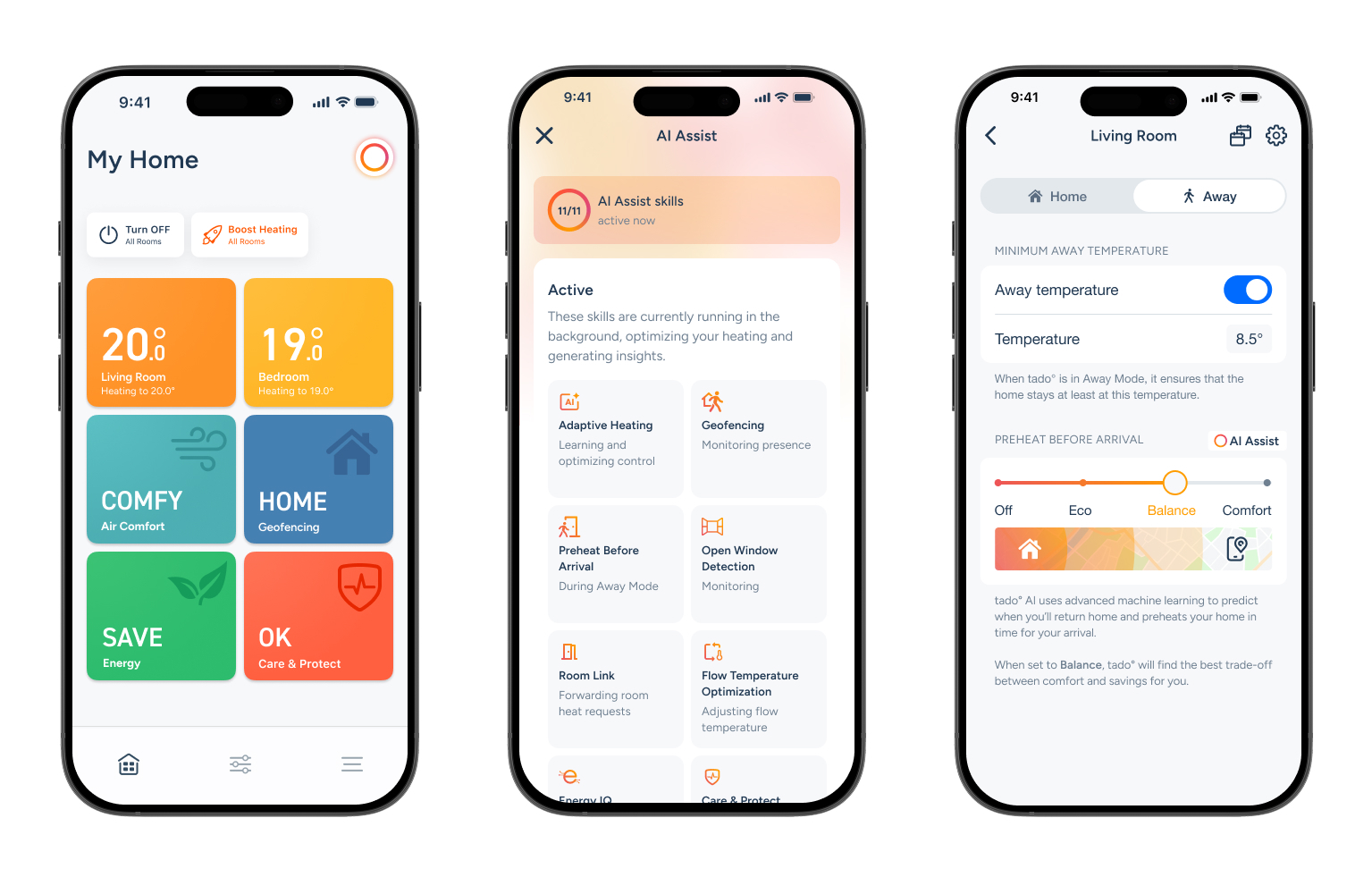 Preheat Before Arrival: Tado AI uses advanced machine learning to predict when you’ll return home and preheats your home in time for your arrival.